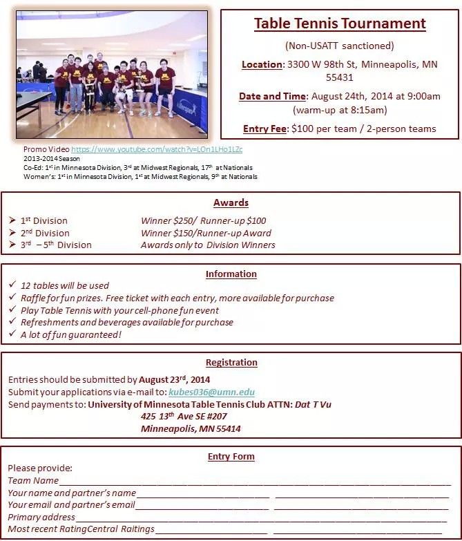 University of Minnesota Table Tennis Club Tournament.